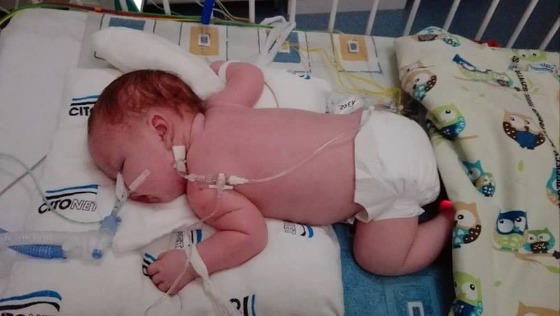 Kacperek, nasz trzeci synek, urodził się 14 grudnia 2015 roku o godzinie 22:53 w szpitalu przy ulicy Karowej w Warszawie. Kacperek był bardzo dużym dzieckiem. Urodził się przez cesarskie cięcie, ważył 4210 gram i miał 57 cm. Urodził się z sinicą obwodową, obniżonym napięciem mięśniowym z nieregularną czynnością oddechową. Został przetransportowany na oddział Patologii Noworodka.