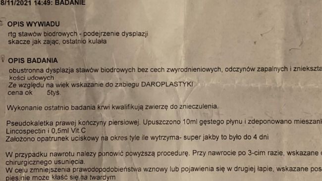 Miesiąc temu zdiagnozowano u niej chorobę genetyczną- dysplazję. Operacja nie należy do trudnych, jednak sukces leczenia zależy od szybkości jej podjęcia. Ostatni termin, w którym można wykonać skuteczną operację to 17.02.2022 r.