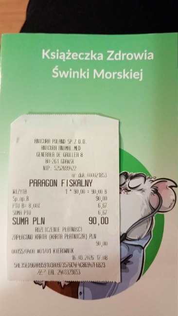 Powyżej karta informacyjna i paragon z pierwszej wizyty.