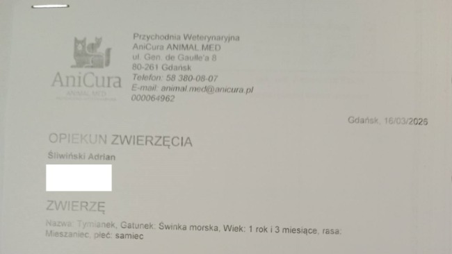 Na tym etapie trudno dokładnie oszacować całkowity koszt diagnostyki i leczenia, dlatego cel zbiórki ma charakter orientacyjny. Jeśli dzięki Waszej pomocy uda się zebrać więcej środków, ewentualną nadwyżkę przekażę na rzecz Stowarzyszenia Pomocy Świnkom Morskim, z którego adoptowałem Tymianka.