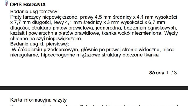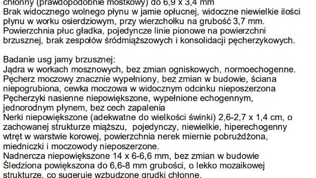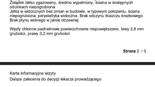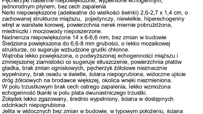 Dzisiaj po moim telefonie do przychodni otrzymałem opis badania USG: