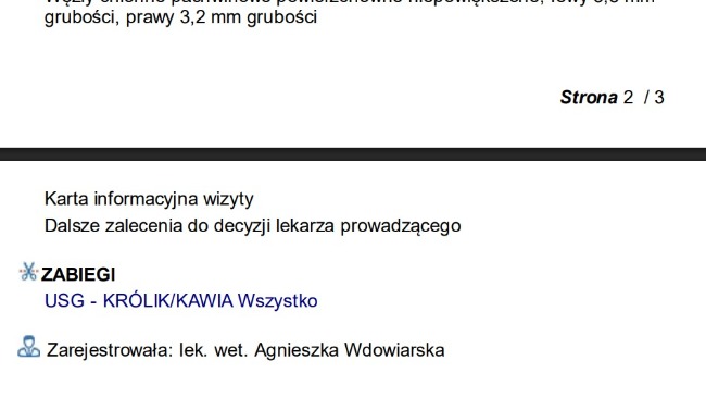 Tak wygląda opis USG Tymianka. Na szczęście Tymuś nadal czuje się dobrze, więc spokojnie czekamy na kolejną wizytę.