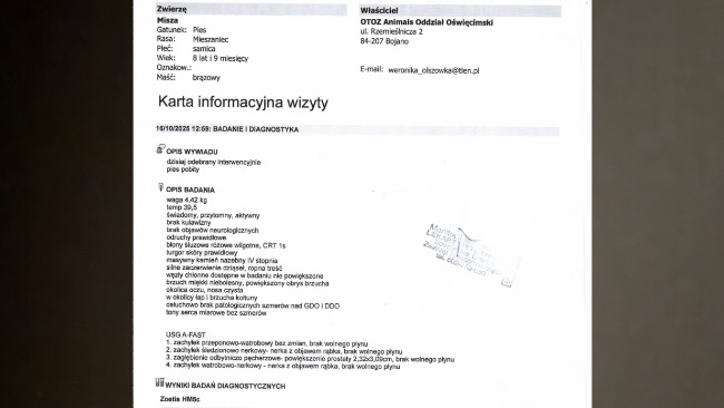 Pies został odebrany na podstawie art. 7 ustawy o ochronie zwierząt – ze względu na bezpośrednie zagrożenie jego zdrowia i życia. Interwencja odbyła się przy asyście Policji.