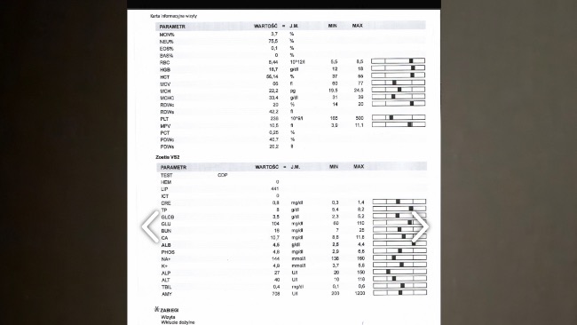 Na szczęście nie stwierdzono obrażeń wewnętrznych, jednak stan zdrowia psa wymaga pilnej opieki: