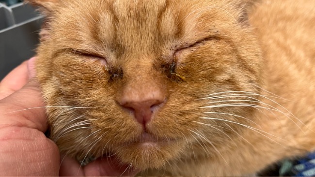 Kilka dni temu dostałam prośbę o pomoc dla kocurka, który sam zaczepia ludzi. Szuka kontaktu ❤️🩹 Oczka w fatalnym stanie, smutny koszmarnie 😞