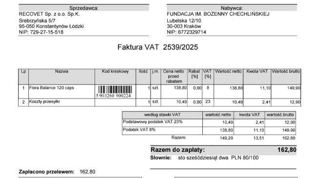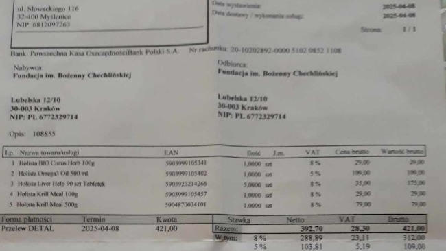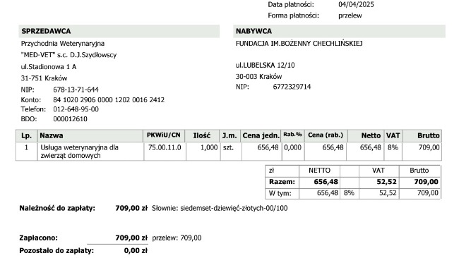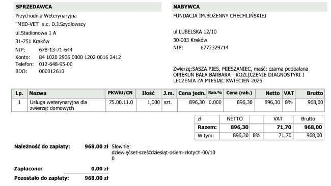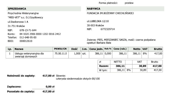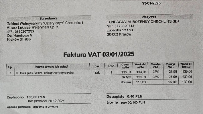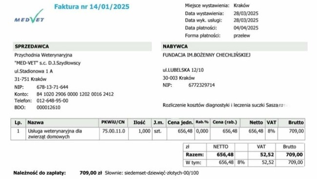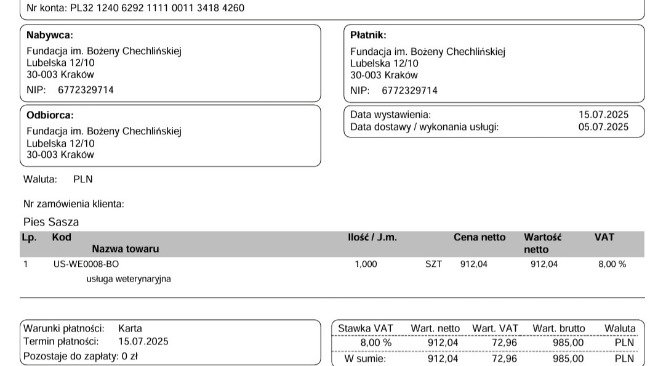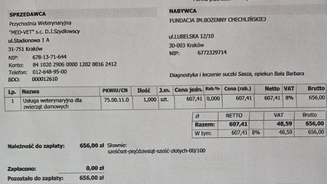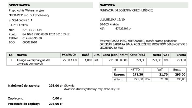 Ogromnie dziękujemy za wasze zaangażowanie. Dzięki wam udało się opłacić fakturę i zakupić leki dla Saszy.