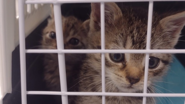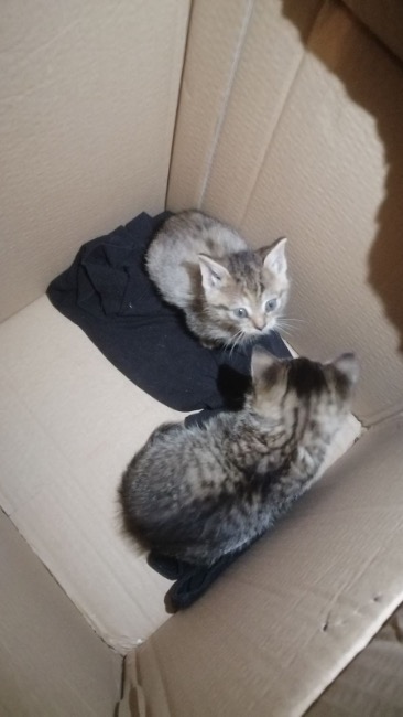 W środku znajdowały się dwa maleństwa - otrzymały od nas imiona Szarlotka i Keks – które mogły mieć najwyżej 5–6 tygodni. Wyglądały na zdrowe, może troszkę zmarznięte. Nie dowiemy się nigdy, kto i w jakich okolicznościach je porzucił, ale widać było, że trafiły do nas od razu po tym fakcie, gdyż nie nosiły jeszcze oznak chorób czy wygłodzenia.