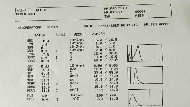 Dodatkowo wykryto u niego guza niewiadomego pochodzenia. Był on operacyjny i w wczoraj został usunięty. Materiał został wysłany do badań, a wyniki otrzymamy za ok. 3 tygodnie.