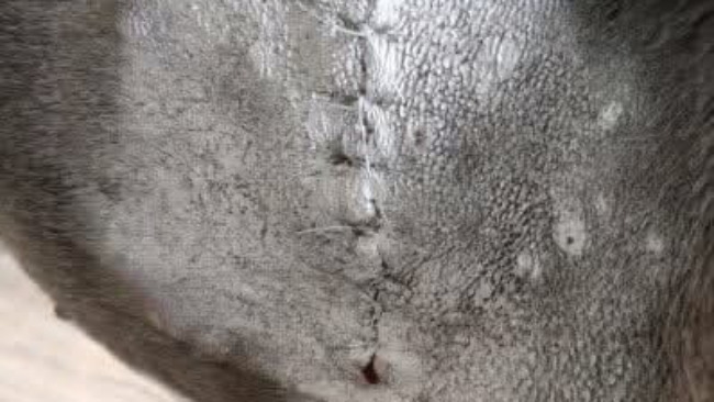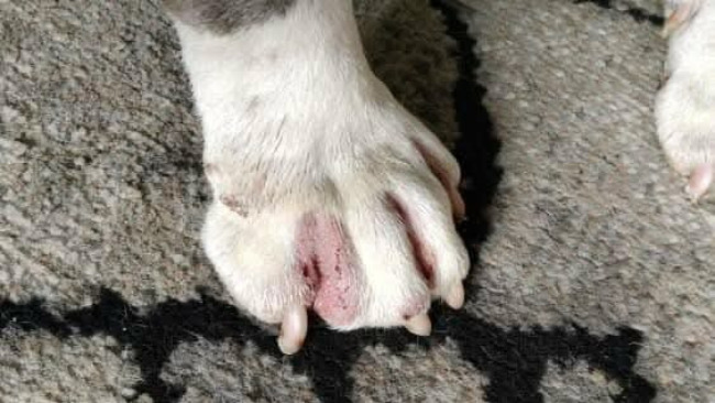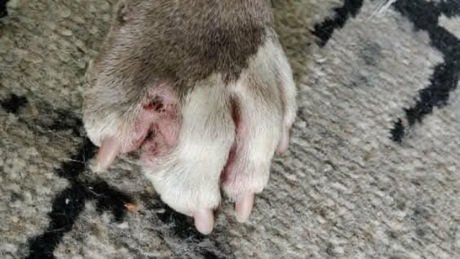 Niestety, Heniu zmaga się z poważnymi problemami skórnymi na tle alergicznym. Każdego dnia przyjmuje leki (Apoquel), aby zapobiec ranom na łapach i towarzyszącemu dyskomfortowi.