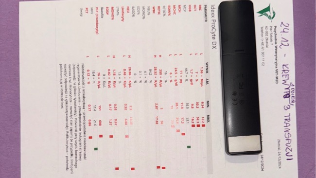 Rysiu przeszedł już ogromnie wiele badań i 3 transfuzję krwi, bo mimo leków nic nie poprawia jego stanu, a krew wciąż ucieka. Bardzo ciężki przypadek, któremu trudno postawić diagnozę, dlatego musimy walczyć i kupować czas kolejnymi transfuzjami krwi, które są ogromnie kosztowne, ale choć na chwilę dodają mu siły i więcej czasu na walkę 😭