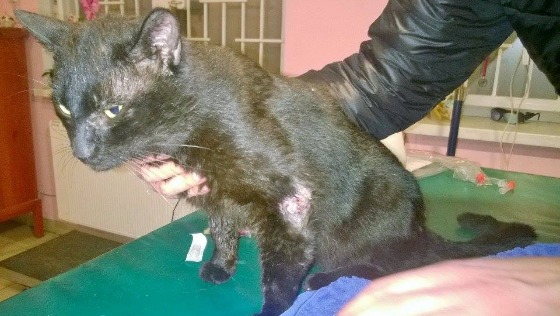 Po wizycie u weterynarza, badanie palpitacyjne nie wykazało świeżego złamania. Mimo to każdy dotyk powoduje u kota ogromny ból. W przyszłym tygodniu kotek pojedzie na Kliniki Weterynaryjne, gdzie będzie miał wykonane USG i RTG by zobaczyć co dzieje się w środku.