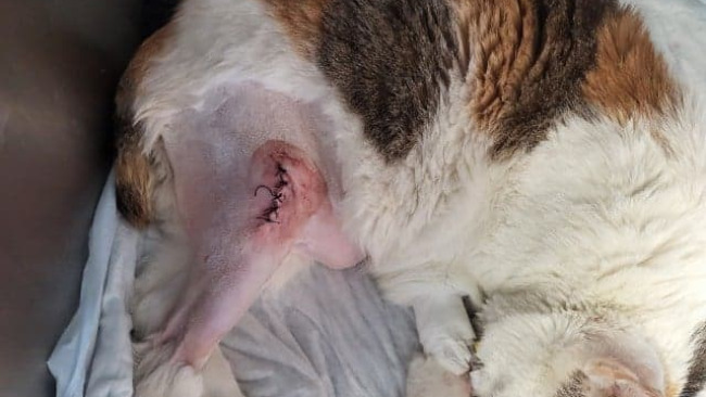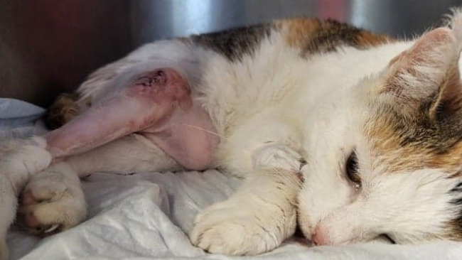 W lecznicy okazało się, że kicia ma zerwane więzadło w łapce.
