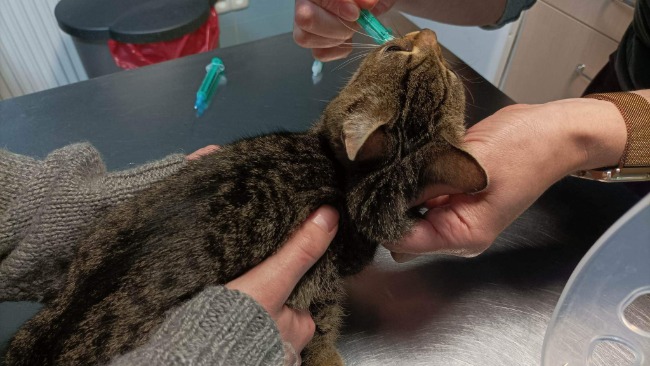 Kociaki od razu zostały zabrane do weterynarza, który wdrożył leczenie. Dodatkowo przez niską odporność muszą dostawać surowicę. Oprócz tego przyjmują vetomune oraz probiotyk.