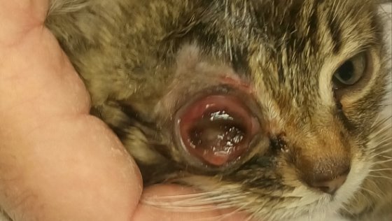 Maluszek znaleziony z zawansowanym kocim katarem, niestety oczka nie udało się uratować .