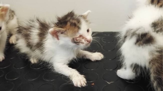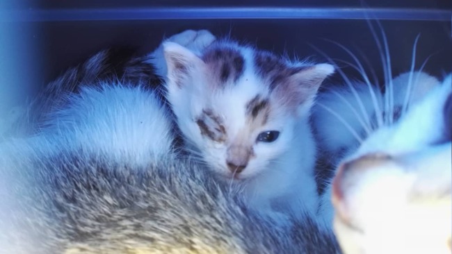 Dziś (06 sierpnia 2019) trafiła pod naszą opiekę kolejna kocia rodzina - matka i 4 kocięta. Oprócz kociego kataru jedno z kociąt jest w bardzo złym stanie, ma na szyi starą ranę z zaschniętą ropą, jest bardzo wyziębione (temp. 35,5 stopnia). Nie wiadomo czy przeżyje :(