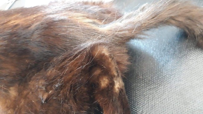 Miał wypadnięty odbyt, mógł się tylko załatwiać jak stał... grawitacyjnie.. miał niedrożne jelita, płyny w otrzewnej, zwłóknienia przy wątrobie, powiększone wszystkie ważne organy, a na dodatek paraliż ogonka w 90%, wszoły i pchły.... nikt go nie chciał....