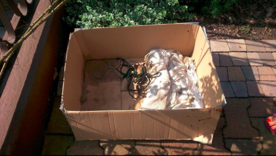 Na posesji we Wrocławiu na Muchoborze, została znaleziona kotka z kociętami zamknięta w kartonie dociśnięta plastikowym transporterem od góry, wszystko związane sznurkami, postronkami!