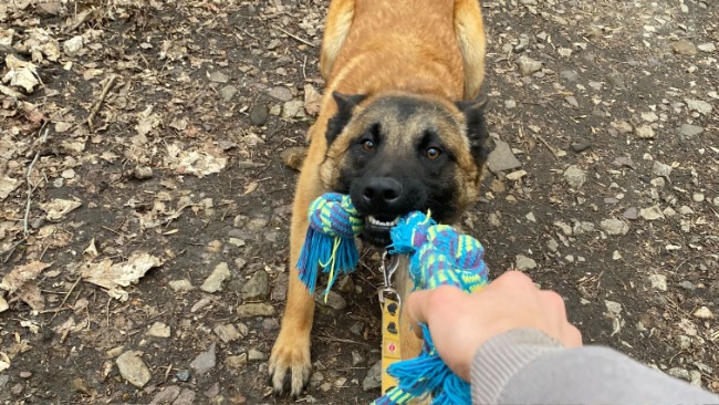 Na wybiegu Łapa turla się w trawie, jakby świat dopiero się zaczął.