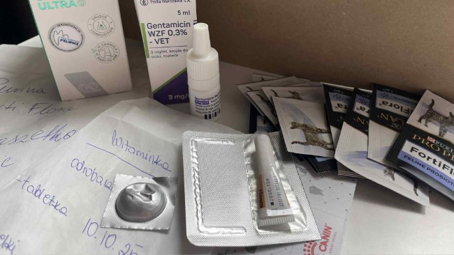 Została wyłapana i zawieziona na badania do lecznicy weterynaryjnych. U koteczki jest silny stan zapalny dziąseł, jeszcze nie wiadomo z jakiej przyczyny.
