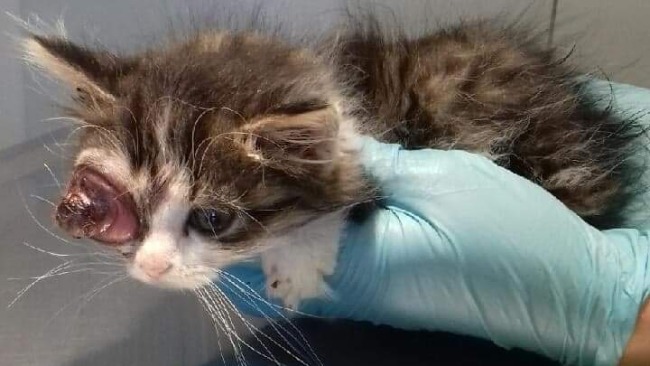 Oczko trafiła pod naszą opiekę z bardzo poważnym urazem oka. Trudno określić jakie było tło początkowe: uraz mechaniczny czy kocia infekcja wirusowa? Trafiła do nas niestety w fazie, w której oko kwalifikowało się tylko do usunięcia.
