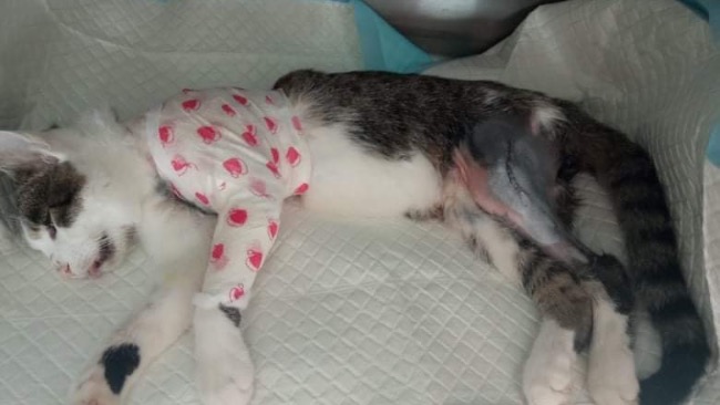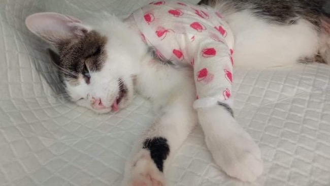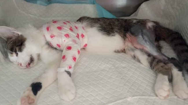 Pewnie wybiegł na ulicę wprost pod nadjeżdżające auto. Dostał w całą lewą stronę ciała: oberwała głowa, przednia łapa, tylna, narządy wewnętrzne. Przejeżdżający tą drogą ludzie zgarnęli go z pobocza drogi i przywieźli do kliniki. Uratowali mu życie. W pierwszych godzinach kociak był w tak tragicznym stanie, że nie wiadomo było, czy w ogóle przeżyje. Udało się jednak - szybka pomoc lekarska spowodowała, że Frugo przetrwał najgorszy czas i powolutku doszedł do siebie. W tym momencie jest już po operacji ortopedycznej - skośne złamanie lewej kości ramiennej i złuszczenie nasady dalszej lewej kości udowej. Wstępna cena za operację została ustalona na 800zł. Nie mamy jeszcze faktury, bo nie wiadomo, jak rozwinie się dalej sytuacja i czy będą jeszcze inne koszty. Bardzo prosimy o pomoc w zapłaceniu za operację. 😢