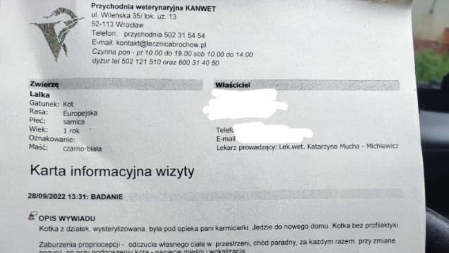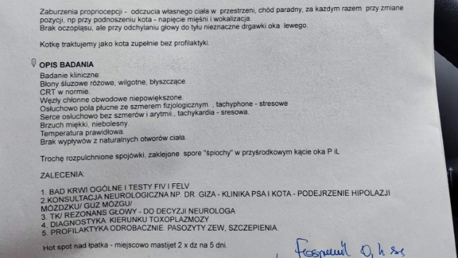 Kotka ma problemy neurologiczne, zatacza się i chodzi "jak pijana". Oto jej wyniki i skierowanie:
