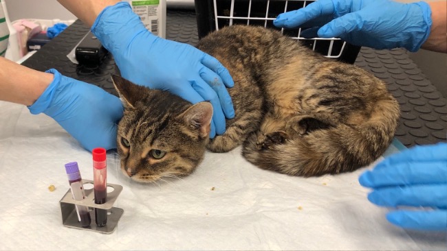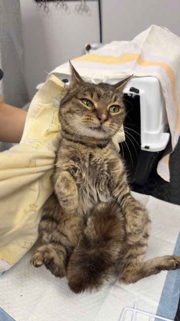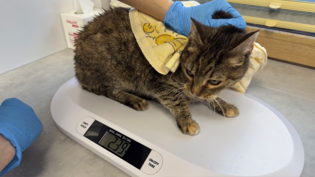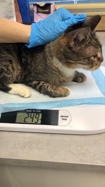 Bura koteczka Laura (ur. 2018r.) jest w najlepszej kondycji spośród całej czwórki naszych nowych podopiecznych, choć nadal wymaga intensywnej opieki. Jest bardzo wychudzona i wygłodzona, ale wyniki krwi – choć dalekie od wzorcowych – nie budzą takiego niepokoju jak u pozostałych kotów. Laura potrzebuje przede wszystkim dobrej, wysokomięsnej karmy, profilaktyki i stabilizacji: szczepienia, odrobaczenia, testów FIV/FeLV i badań krwi.