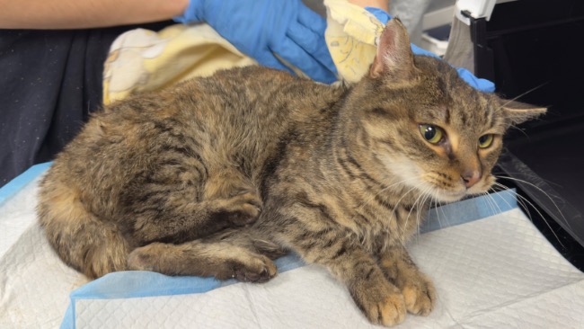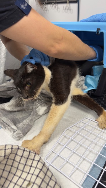 Domiś to szylkretowa kotka (ur. 2018r.), bardzo wychudzona. Waży około 2,5 kg. Jej wyniki krwi na pierwszy rzut oka nie wyglądają źle, ale bierzemy pod uwagę, że skrajne wychudzenie może fałszywie zaniżać część parametrów - krytycznie niski poziom masy mięśniowej może sztucznie obniżać m.in. mocznik czy kreatyninę. W przyszłości konieczny będzie zabieg stomatologiczny, bo ząbki są w złym stanie, jednak najpierw musimy ją odżywić i ustabilizować – zanim w ogóle można myśleć o narkozie. Poza zabiegiem stomatologicznym, Domiś miała już wykonane badania krwi, a będzie jeszcze potrzebowała odrobaczenia, testów FIV/FeLV, szczepienia i echa serca.