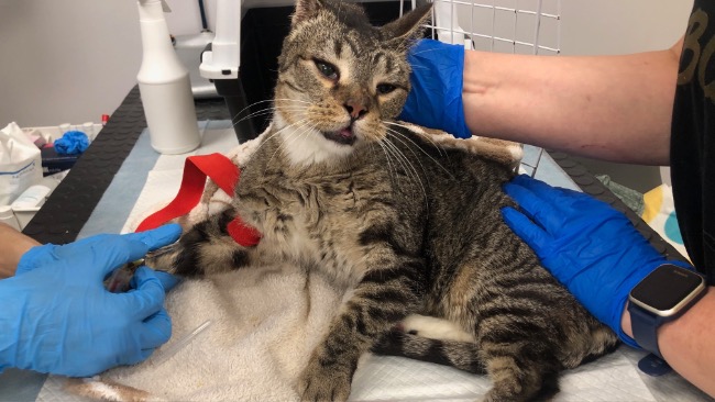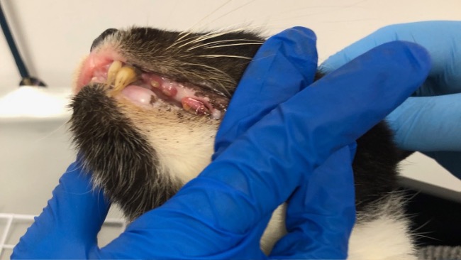 Czarno-biały kocurek Teodor (ur. 2019r.) ma absolutnie tragiczny stan uzębienia. Zabieg stomatologiczny musi być wykonany natychmiast – zęby są w tak złym stanie, że w jednym miejscu widać fragment odsłoniętej kości szczęki. Trudno wyobrazić sobie, w jakim bólu funkcjonował od dłuższego czasu. Jest skrajnie niedożywiony, wyniki badań krwi pokazują obniżoną fruktozaminę, co świadczy o tym, że od dawna nie pokrywał dziennego zapotrzebowania kalorycznego. Do kosztu rozległego zabiegu stomatologicznego, dochodzi zaczipowanie, odrobaczenie, szczepienie, testy FIV/FeLV, leki i antybiotyki, które już otrzymał, oraz echo serca.