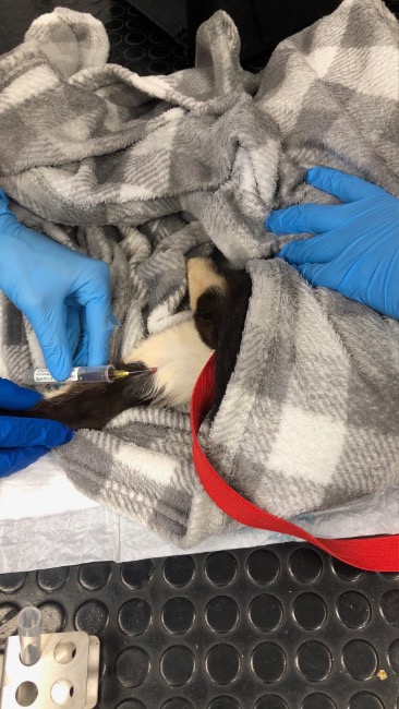 W najgorszym stanie jest buro-biała Pyza (ur. 2017r.). Waży niecałe 2,5 kg i zmaga się z bardzo silnym stanem zapalnym – na ten moment udało się wykonać u niej jedynie morfologię. Jest skrajnie wychudzona, zdziczała, przerażona. Walczymy o nią każdego dnia, ale na ten moment nie mamy pewności, czy uda nam się ją uratować... Jeśli wygramy walkę o jej życie, koteczka potrzebować będzie szczepień, testów FIV/FeLV, odrobaczenia, badań krwi, zabiegu stomatologicznego oraz echa serca - do tego doliczyć należy równie antybiotyki i kroplówki, które już otrzymuje.