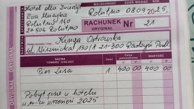 Rachunek za usługi transportowe ( przewiezienie z jednego hoteliku do drugiego ) - 440zl.