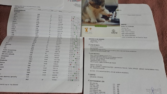 Jestem właścicielką kota o imieniu Simba 😊. Trafił do mnie półtora roku temu, znalazłam go pod wentylatorem w kurzych odchodach... 😞. Miał wtedy zaledwie tydzień... Dopadło go zapalenie spojówek 🥺. Wyleczył się, karmiłam go mlekiem dla kociąt i masowałam brzuszek. Rósł zdrowo, wyrósł na ładnego, dorosłego kota 😄. We wrześniu w tym roku Simba przeszedł kaliciwirozę 😞. Miał wysoką gorączkę, nadżerki, brak apetytu, mocny stan zapalny... Odwiedził weterynarza, dostał leki i przeszło. W październiku wybrałam się z nim na badanie krwi i niestety wyniki nie wyszły za ciekawe. W listopadzie choroba nawróciła 😞. Tym razem miał dużo za niską temperaturę, nadżerki, stan zapalny, brak apetytu i był mocno odwodniony. Dostał kroplówkę, leki i przeszło. W grudniu choroba znowu nawróciła 😞. Jestem załamana... Ponownie niska temperatura, był osowiały, nadżerki, brak apetytu. Była to niedziela, pojechaliśmy do szpitala. Dostał leki, antybiotyk co trzy dni. Przy trzeciej dawce ( 15 grudnia ) zrobiliśmy testy na fiv/felv i całe szczęście wyszedł ujemny. 19 grudnia dostał ostatnią dawkę antybiotyku. Cały czas dostaje VetoMune. Musimy zrobić ponowne badanie krwi, usg ( usg nerek, ponieważ jest możliwość, że nerki nie działają prawidłowo ). Są to ogromne koszty 🥺. Simba prosi o każde wsparcie 🙏
