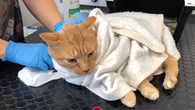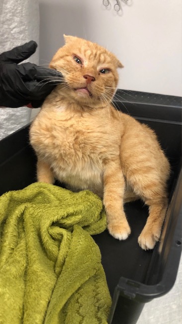 Mieliśmy zobaczyć go ponownie po miesiącu, aby powtórzyć odrobaczenie… ale Krokiet wrócił dwa dni wcześniej przed umówionym terminem 😔 Karmiciel był bardzo zaniepokojony — kot się ślinił, był osowiały, wyraźnie cierpiał. Ponowna diagnostyka wykazała nawracające zapalenie górnych dróg oddechowych, prawdopodobnie jako powikłanie po nicieniach płucnych. Na dodatek wykryliśmy u niego tasiemca, który powodował wychudzenie mimo regularnego dokarmiania 🐛