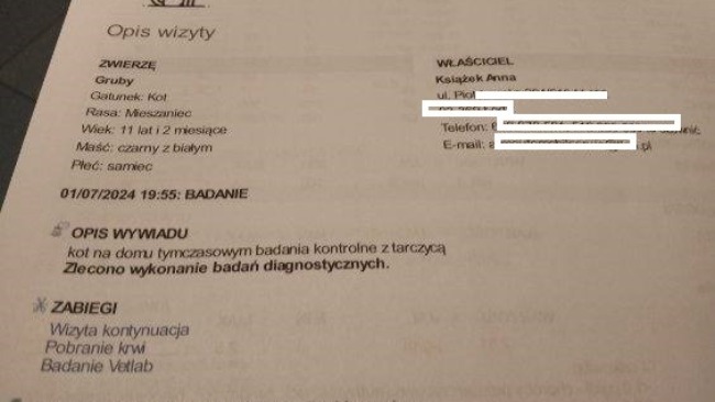 W pierwszej lecznicy jeszcze nie uregulowałam rachunku bo chciałam jak najszybciej zawieźć kota do całodobówki. Teraz weekend, wszystko będzie droższe.