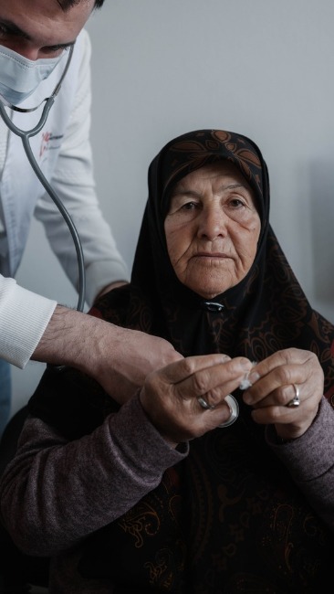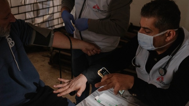 W pustym pomieszczeniu opuszczonego budynku w Bejrucie Lekarze bez Granic otworzyli klinikę mobilną, aby zapewnić wysiedlonym społecznościom dostęp do opieki zdrowotnej. Liban, 2026. Zdjęcie: Emin Ozmen/Magnum Photos