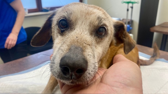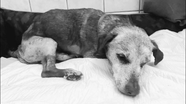 Na zdjęciu, które przesłała, widać było jedynie głowę i część ciała starszego, schorowanego psa. Kiedy Pani Agnieszka przywiozła do nas psa do Wrocławia, serce nam pękło na wiele kawałków, widząc niewinną istotę w tak strasznym bólu i cierpieniu. Staruszek, w wieku 12-15 lat, jest w bardzo ciężkim stanie. Gdy zobaczyłem go na własne oczy, łzy same cisnęły się do oczu.