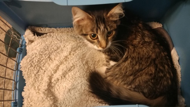 Kilka dni temu świat na chwilę się dla niego zatrzymał. W przygranicznym rowie, skulony, zmarznięty i brudny, siedział on – mały kot z ogromnym ciężarem na barkach. Znalazła go nasza znajoma. Gdy spojrzał na nią oczami pełnymi prośby, bólu i lęku, wiedziała jedno: nie może odejść. Zabranie Kubusia do domu było odruchem serca.