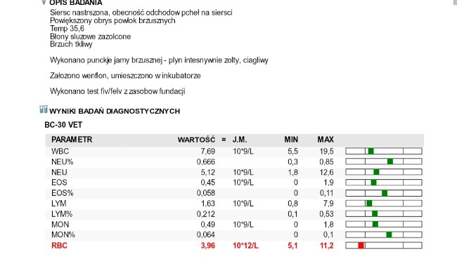 Dziś trafił do dyżurującej przychodni i został przyjęty do tzw. kociego szpitala. Brzuszek bardzo duży, pierwsze badania, pierwsze podejrzenia… i diagnoza, która za każdym razem powala nas na kolana: FIP.