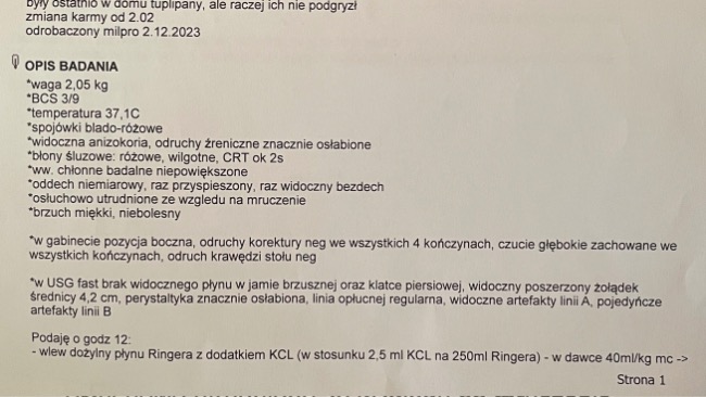 Niespodziewanie jednak po kilku miesiącach spokoju i szczęścia, że w końcu wszystko jest w porządku 12 lutego 2024 roku Naparstkowi najpierw kończyny tylnie odmówiły posłuszeństwa - od tego się zaczęło. Nikt nie wiedział co mu jest - morfologia bezbłędna jak i rentgen oraz USG. Teraz jego stan znacznie się pogorszył, ma porażone wszystkie kończyny, ma oczopląs, problemy z przełykiem - może tylko leżeć i błagać o pomoc. Wszystko wskazuje na niebezpieczną chorobę -wirusowe zapalenie otrzewnej. Stwierdzono nam, że nigdy nie widziano tak ciężkiego przypadku jak u mojego malucha. Jest cudownym jeszcze małym kotkiem, który nie zasługuje na to wszystko co go od początku życia spotyka. W jego krytycznym stanie nie mamy czasu czekać AŻ TYDZIEŃ na potwierdzenie wyniku badań, może być to wyrok śmierci. Ma dla kogo stanąć na nogi, bardzo go kocham i nie chcę go stracić. Pragnie mieć przed sobą długie kocie życie w ciepłym, kochającym domu