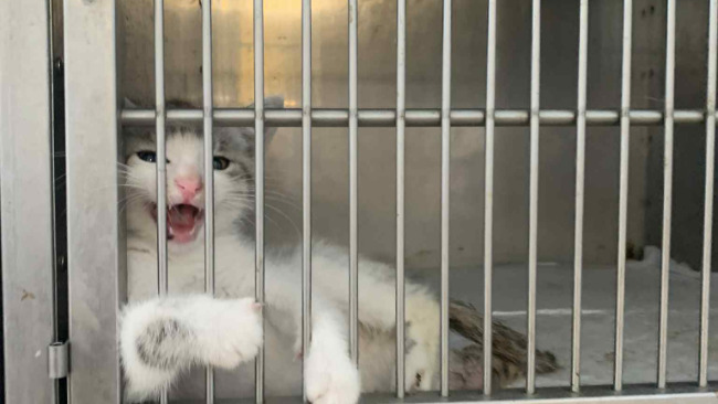 Brudne futerko, przerażenie w oczkach.
