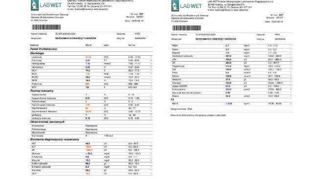 Barbara została odebrana interwencyjnie, decyzją o zatrzymaniu. Na ten moment nie możemy szukać jej domu, bo sprawa formalna wciąż trwa. Tak wygląda prawo, rzeczywistość... Zwierzęta, którym "ma się żyć lepiej" utykają w prawnej wirówce... To oznacza jedno: wszystkie koszty leczenia, leków i badań spoczywają na nas. Po wykonaniu badań kontrolnych okazało się, że wynik są złe, a dalsza diagnostyka tylko obnażyła smutną rzeczywistość.