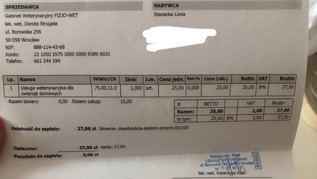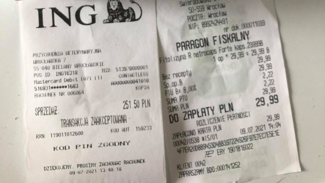 Wrzucam zaległe rachunki za leki Bożenki oraz konsultację dermatologiczną Frani.