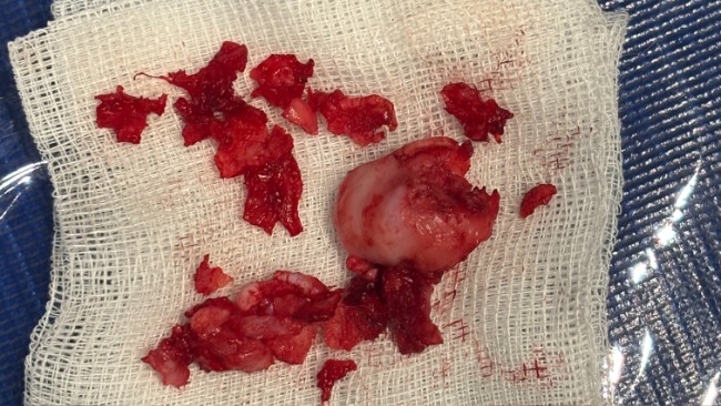Fot. Fragmenty usuniętej nasady i główki kości udowej LKM