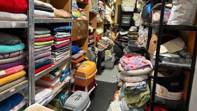 Cóż jeszcze mamy? Kuchnię, pralki, lodówkę, małą aptekę w korytarzu, prowizoryczną łazienkę, magazynek… Wszystko to, co jest niezbędne, by zachować czystość, przechowywać karmę, żwirek, kocyki, posłanka…