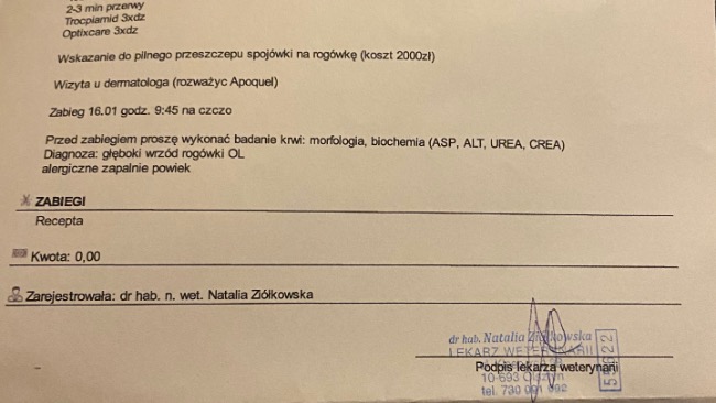 Mila ma piec lat, jest słodkimi energicznym buldogiem francuskim, lecz dziś została zdiagnozowana z głębokim wrzodem rogówki OL, jedynym rozwiązaniem jest PILNY przeszczep spojówki na rogówkę, który kosztuje 2000 złoty. Przeszczep jest bardzo pilny, wykonać trzeba go 16 stycznia, gdyż oko w każdym momencie może Milusi pęknąć co skutkuje możliwością śmierci, lub natychmiastowego usunięcia oka.