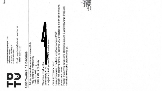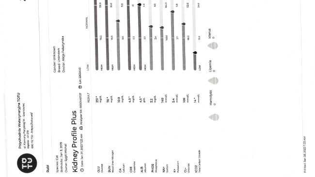 W piątek 27.01 Rubi zaczął źle się czuć i miał problemy z oddawaniem moczu co mnie zaniepokoiło. Z rana popędziłam do weterynarza. Kotek dostał zastrzyki rozluźniające, które miały do południa mu pomóc, ale jego stan wcale się nie poprawił. Już po 14 pojechałam do kolejnego weterynarza. Dostaliśmy diagnozę - ostre zapalenie nerek. W trakcie prześwietlenia widać było że mocz cofał się do nerek. Rubi został zacewnikowany i do godziny 20 musiał zostać w klinice, gdzie był pod opieką specjalistyczną. Za tą wizytę musieliśmy zapłacić 607 złotych . Wtedy już wiedzielismy, że nie damy rady sfinansować dalszego leczenia Rubiego, a to oznaczałoby konieczność uśpienia... Kotek, by przeżyć, wymaga codziennych wizyt do około środy (01.02) w celu przepłukania pęcherza ze szkodliwych toksyn. Sobotnia wizyta kosztowała nas 214 złotych, a niedzielna już 340 złotych na ostrym dyżurze. Tak naprawdę nie wiemy ile wyniosą nas kolejne. Nie możemy pozwolić Rubiemu umrzeć. Jest z nami już prawie 4 lata. Traktujemy go jak członka rodziny i nie wyobrażamy sobie podjęcia tak drastycznej decyzji jak uśpienie go z powodu braku funduszy na leczenie. Z całego serca proszę, w imieniu Rubiego i swoim, o wpłatę na jego leczenie. Liczy się dla nas każda złotówka. Poniżej załączam potwierdzenia dotychczasowych kosztów leczenia i diagnozy.