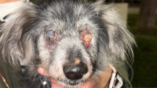 Pies jest w stanie silnego zaniedbania. Choroby skóry, przerośnięte pazury, cuchnący łojotok. Brak jednego oka, a miejsce po nim w stanie, który wołał o pomoc. Zwierzę nie wyglądało na leczone.