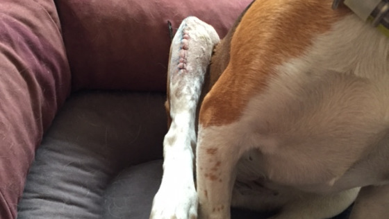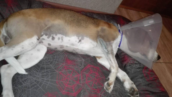 Dopiero po powrocie do schroniska, pojechałam na operację tylnej łapki. Miałam zerwane więzadło. Pan Doktor, który mnie operował, chyba się spieszył, albo może nie wiedział do końca jak ma naprawić to moje więzadło, bo okazało się, że trzeba je zoperować jeszcze raz...