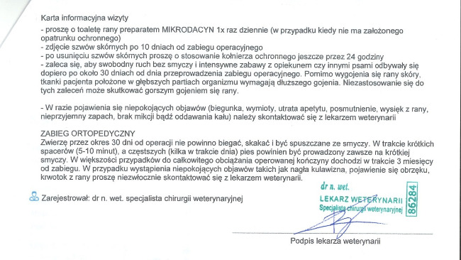 Pola w dniu 13.01.2024 miała przeprowadzony zabieg resekcji głowy i szyjki kości udowej prawej. Operacja przebiegła pomyślnie. Teraz Polę czeka rekonwalescencja i powrót do pełnej sprawności.