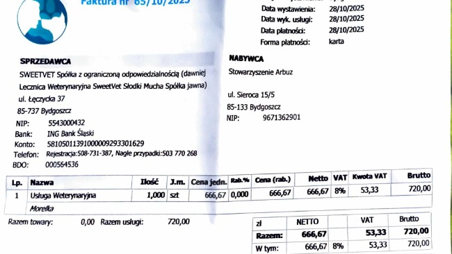 Koszty leczenia są jednak ogromne, a nasze środki — wyczerpane. Dlatego prosimy o wsparcie. Każda pomoc ma znaczenie dla Morelki. Ona jak nikt inny zasługuje na życie!